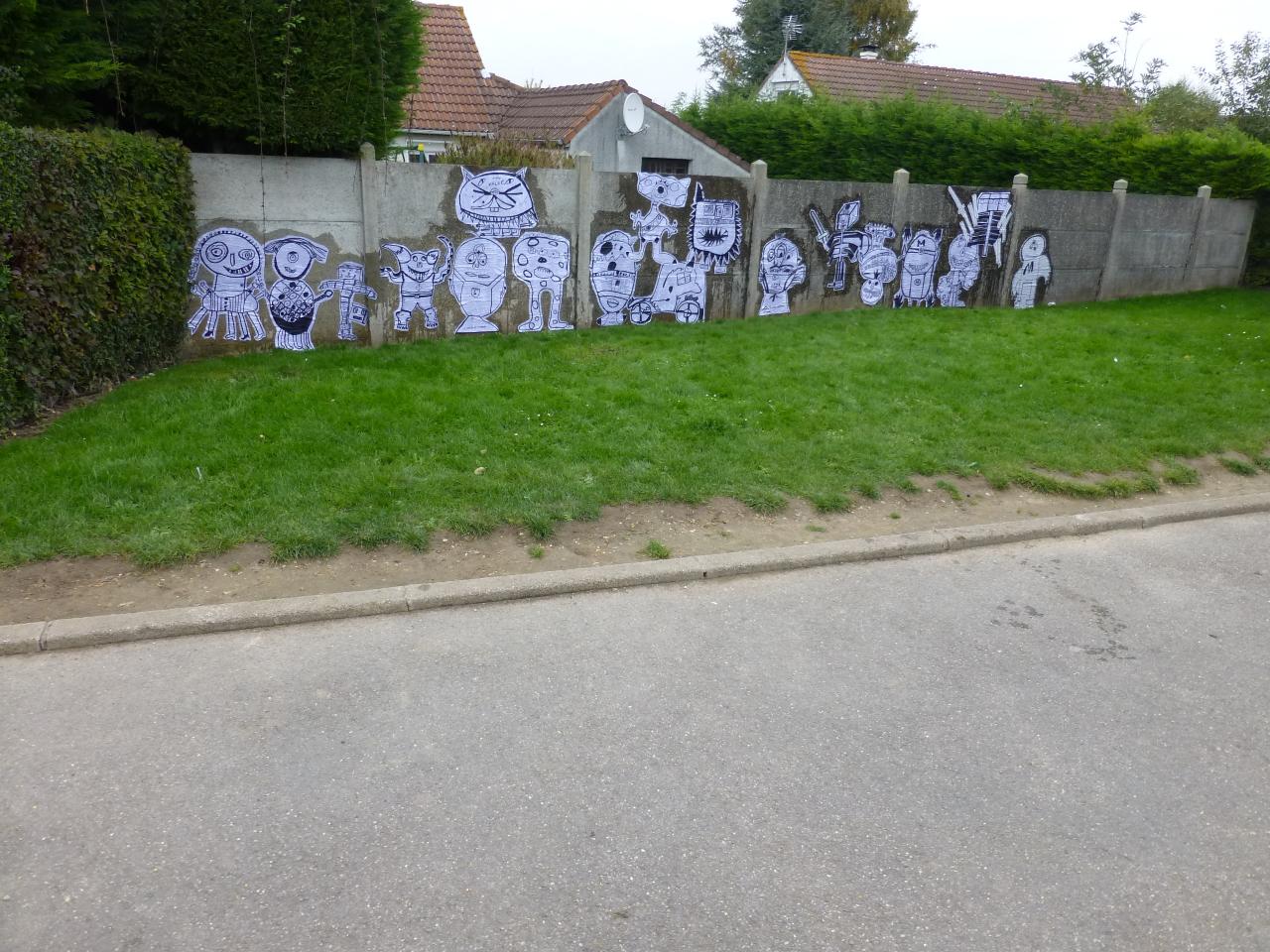 Atelier créatif pour la réalisation d'une fresque sur le mur de la cour de l'école (intervenants : Emmanuel ROUZE [Asso ART GROUPE]